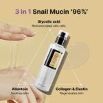 -Snail Secretion Filtrate: helps protect the skin from moisture loss while improving skin elasticity