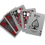 Designed with the traditional Bicycle Playing Card pattern on the back, the cards feature uniquely designed ghoulish and goofy court cards (kings, queens, and jacks) that glow when used under black light. Tragic Royalty Bicycle Playing Cards come in poker size, regular index.