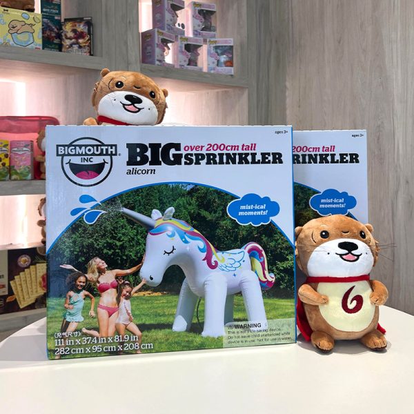 If you’re gonna keep cool, you’ve got to be cool. Sure, the kids could run through the rusty ol’ sprinkler you keep in your shed (think: “ouch! dad my eyes are burning!”). But if you want cool points with the fam you’ve got to THINK BIGGER man! Take your summer game to the next level with our Ginormous 6-foot tall Unicorn Yard Sprinkler. It’s the missing piece to that epic birthday, pool party, BBQ, or family reunion you’ve been planning (or dreading). We made it super-simple to use, too. Just inflate it, and connect a standard garden hose. Turn on the water and voila! water sprays out of the unicorn’s horn and onto a bunch of happy people who were about to leave for “a prior engagement”. The inflatable design also means that it’s lightweight, easy to move, and deflates for compact storage in the off-season. Party saved!