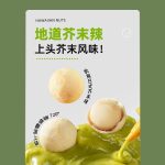 This 500g bag of premium macadamias is infused with a bold and zesty wasabi seasoning, delivering a perfect balance of heat and crunch. Each kernel is carefully roasted to enhance its rich, buttery flavor, creating a unique and satisfying snack that’s both indulgent and exciting.